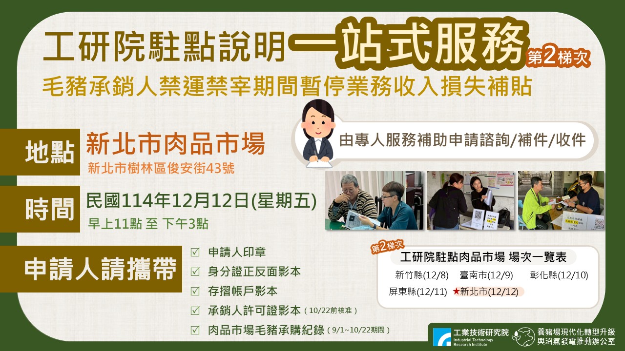 (新北市肉品市場)毛豬承銷人禁運禁宰期間暫停業務收入損失補貼_工研院駐點說明