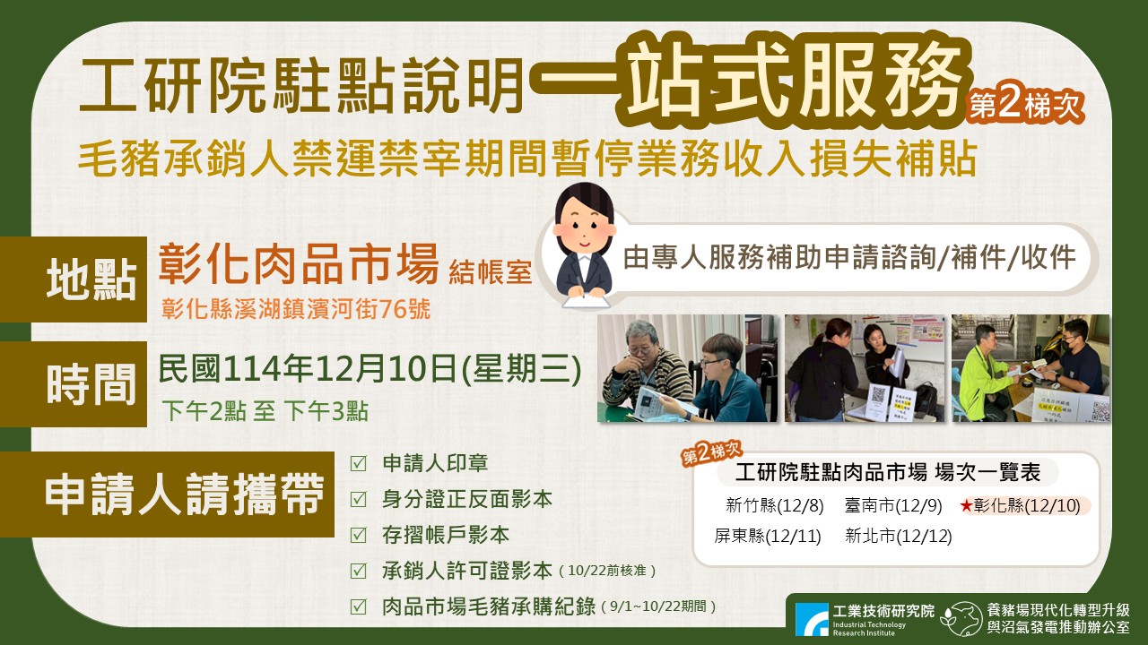 (彰化肉品市場)毛豬承銷人禁運禁宰期間暫停業務收入損失補貼_工研院駐點說明